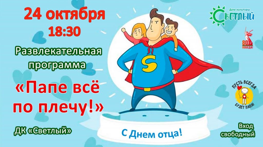 В честь этого события участниками клубных формирований «Батарейки» и «Игралочка» будет проведена интерактивная развлекательная игра «Папе всё по плечу».