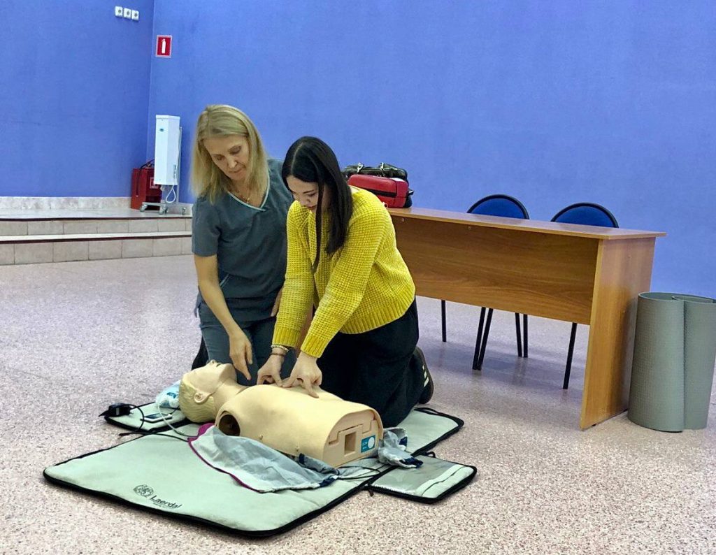 На встрече обсуждались базовые навыки оказания первой помощи пострадавшим: как важно не растеряться в критической ситуации, действовать быстро и правильно, уметь оказать первую помощь, в каких случаях необходимо применить дефибриллятор.