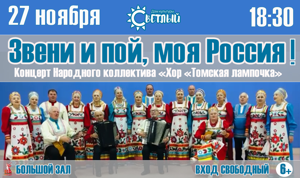 27 ноября в Доме культуры «Светлый» состоится концерт «Звени и пой, моя Россия!»