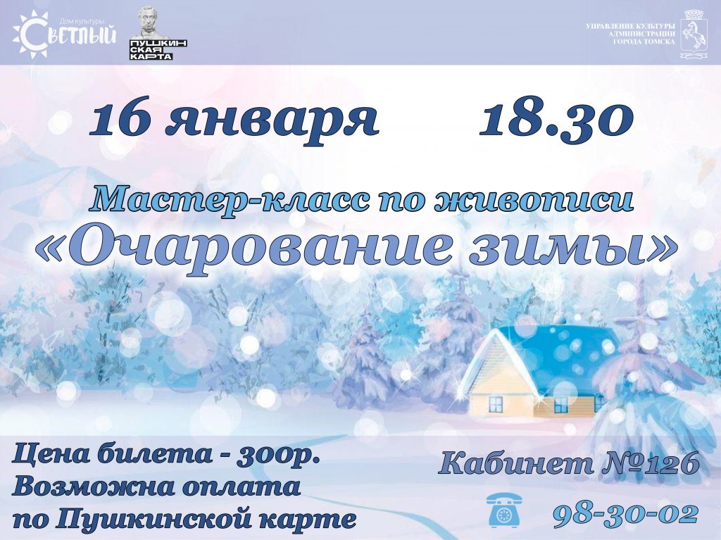 Дом культуры «Светлый» приглашает посетить мастер-класс по живописи «Очарование зимы».