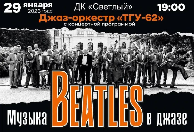 Дом культуры «Светлый» приглашает посетить концертную программу «Музыка Beatles в джазе» в исполнении джаз-оркестра «ТГУ-62»!